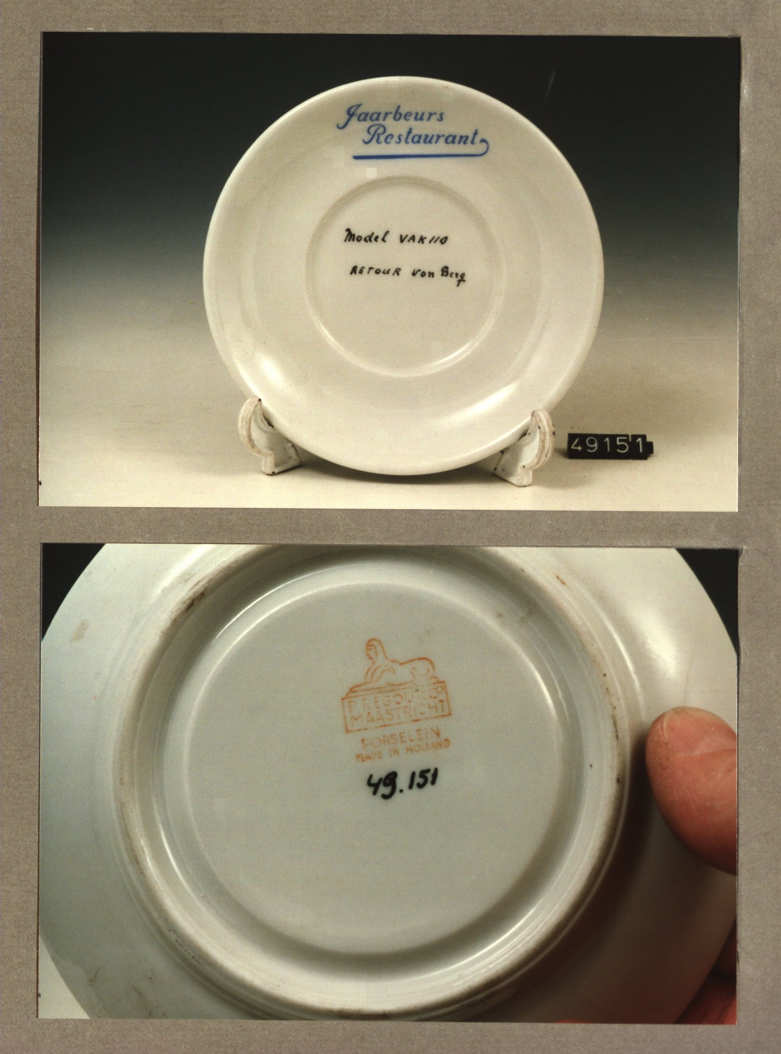 Plat bord, model P met decor Jaarbeurs restaurant J.R.,