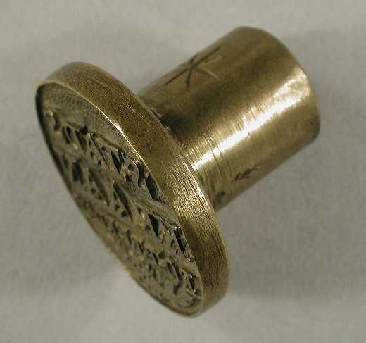 Koperen zegelstempel met onbekend familiewapen