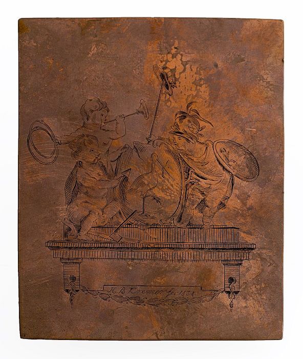 Koperen cliché met een afbeelding van twee engeltjes...