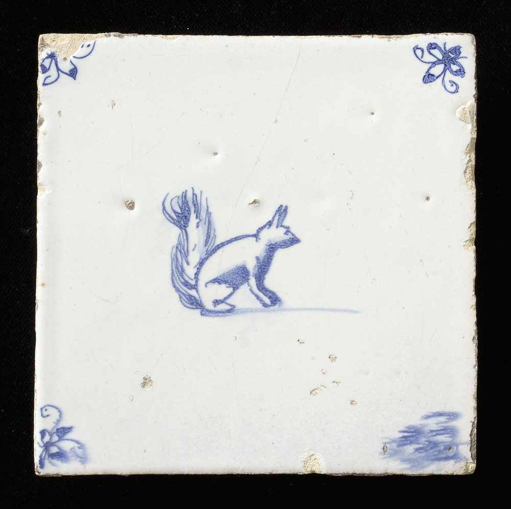 Tegel van keramiek, tinglazuur, voorstellende een sc...