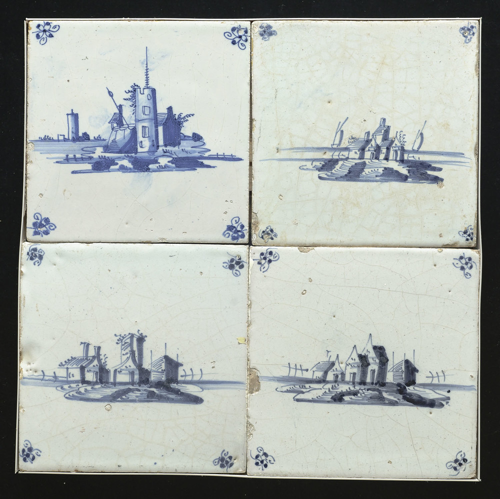 Tegel vervaardigd van aardewerk met tinglazuur, blau...