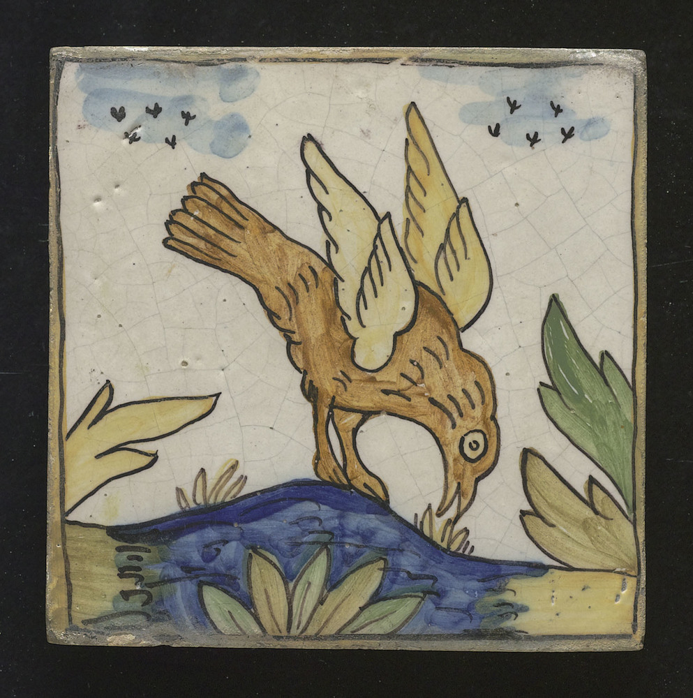 Tegel van keramiek, tinglazuur, voorstellende een zo...