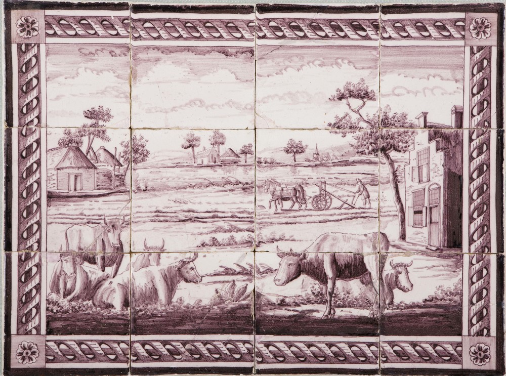 Tegel in tinglazuur, voorstellende landschap ca. 185...