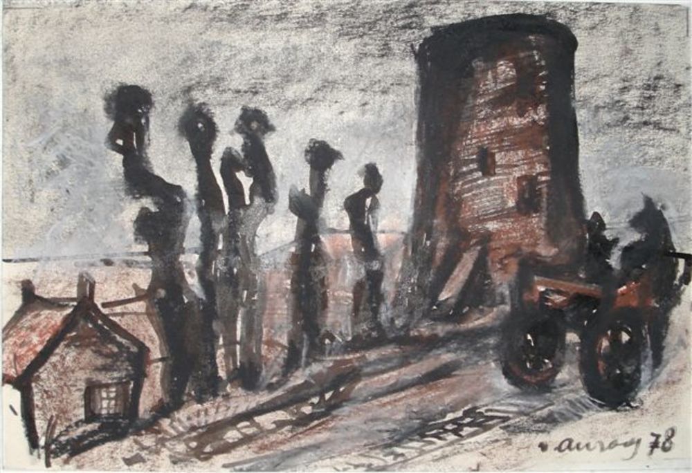 krijttekening, gezicht op oude molen 1978, Jan van A...