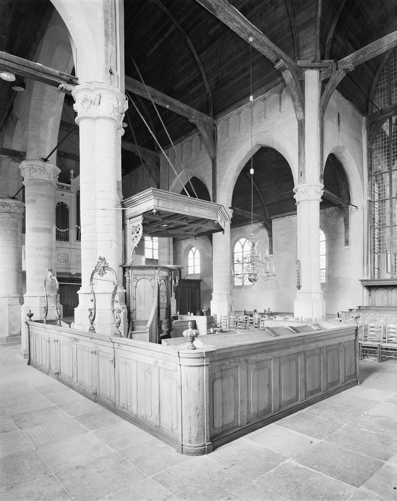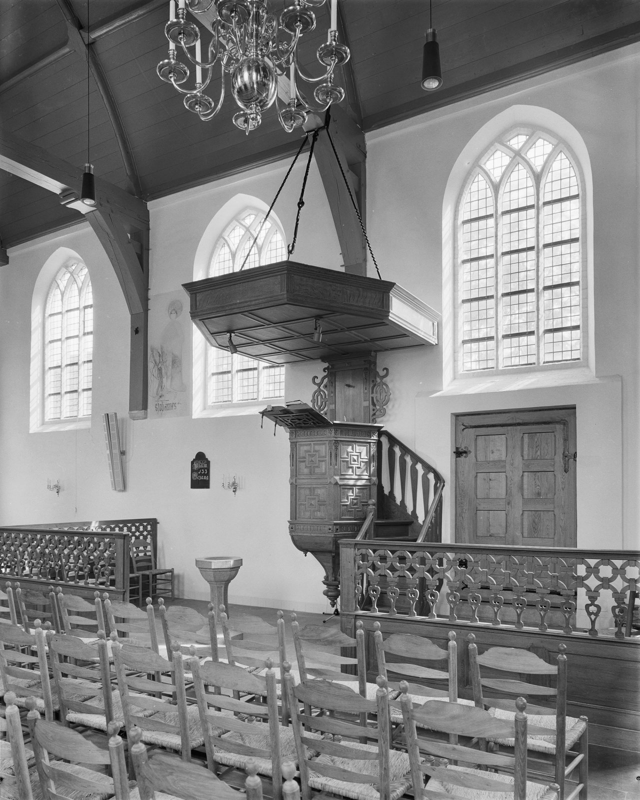 Interieur, preekstoel met doophek