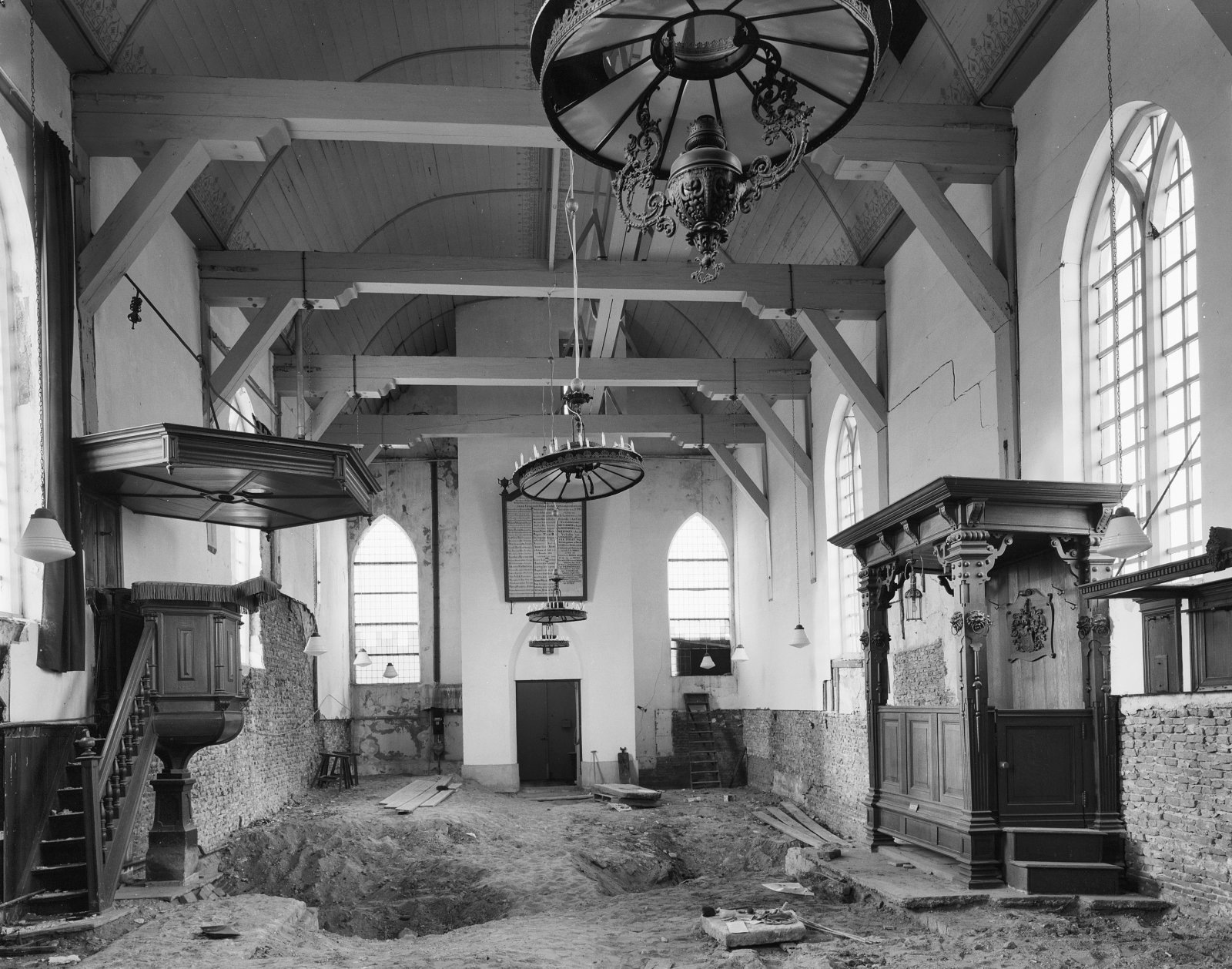 Interieur naar het westen tijdens restauratie