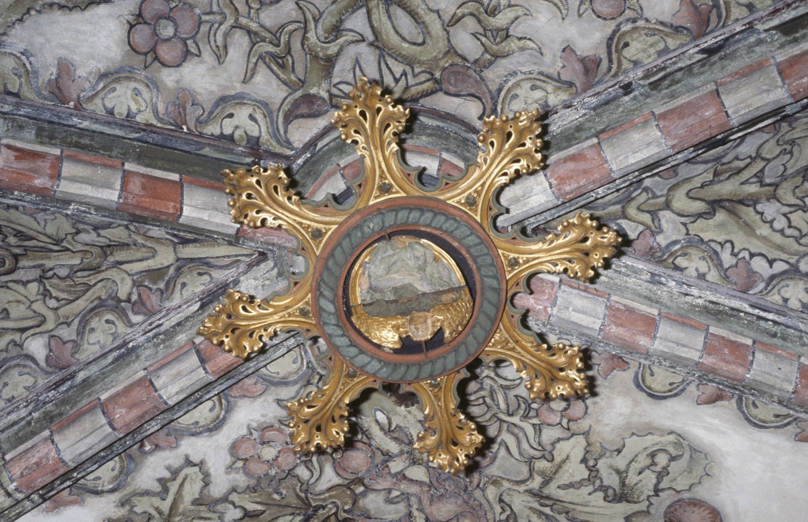 Interieur, gewelfschildering,sluitsteen