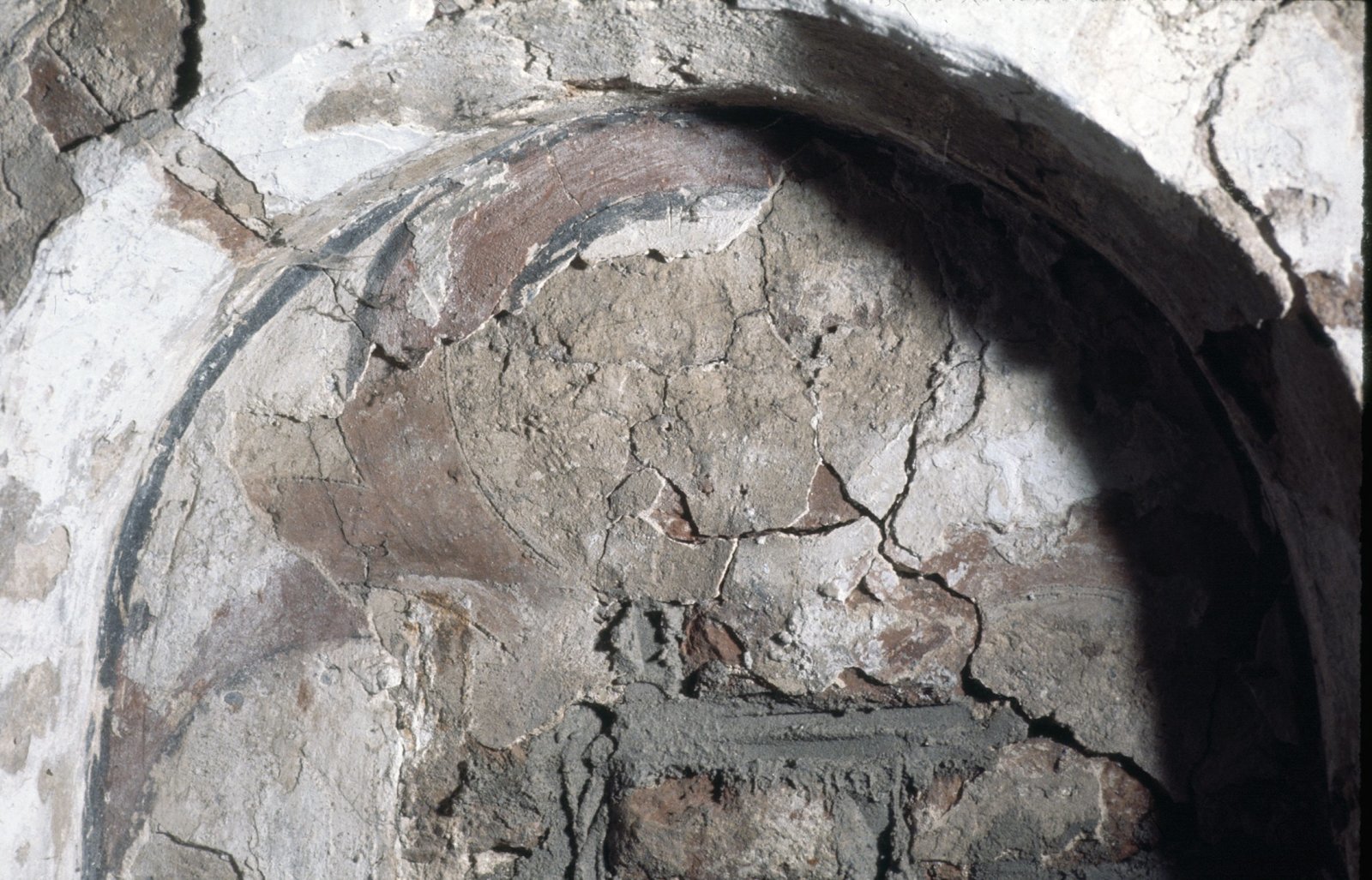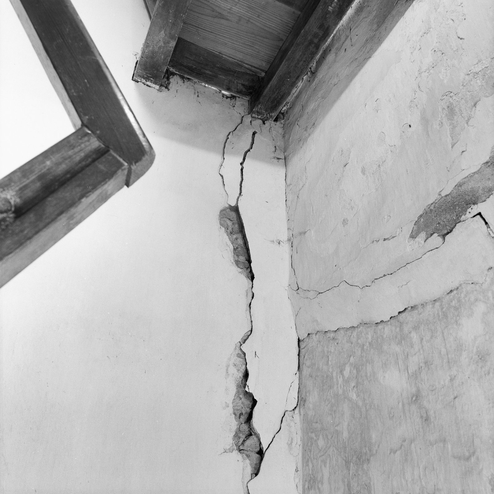 Interieur westzijde, met scheurvorming in de muur