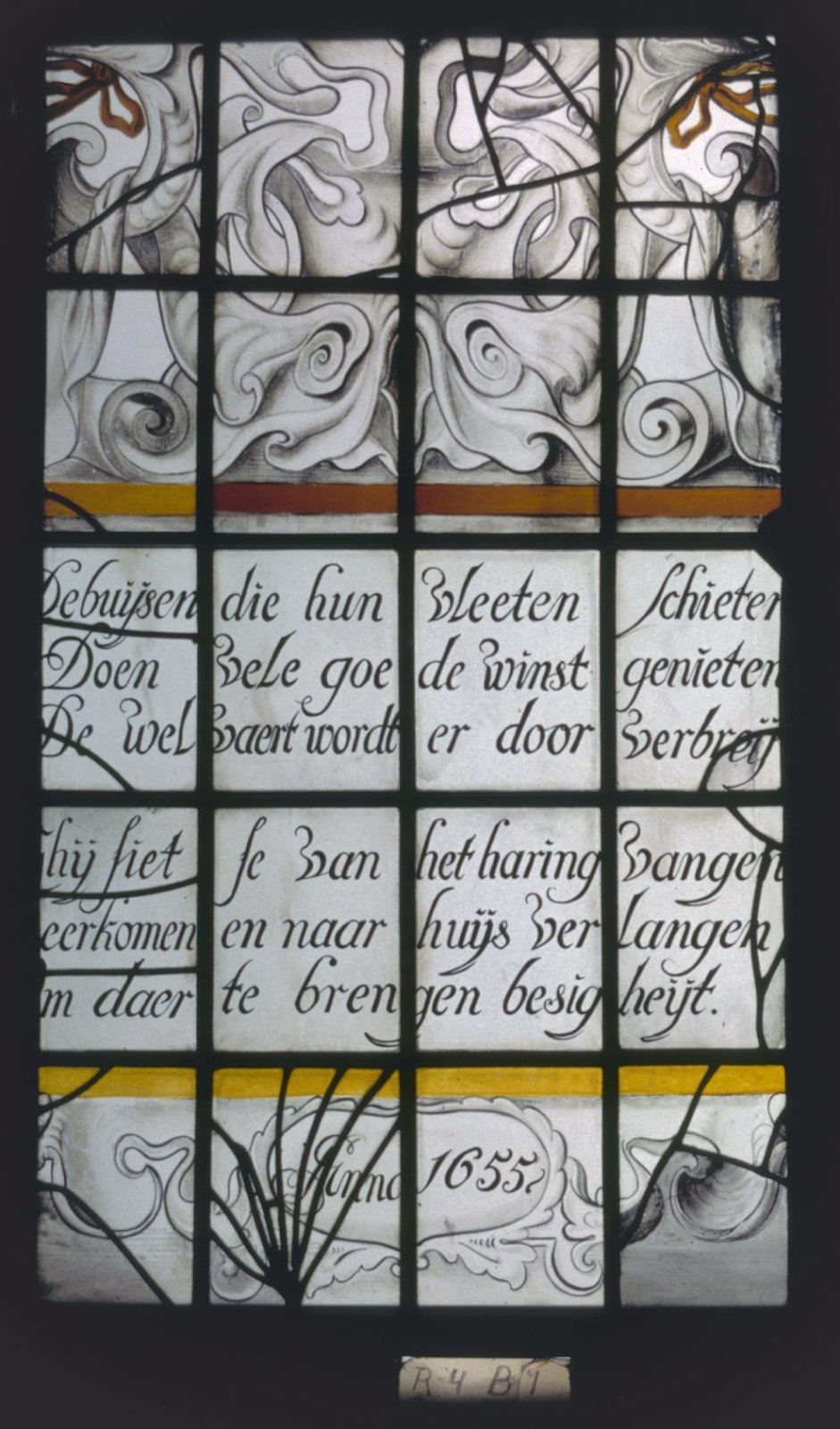 Interieur, gebrandschilderd glas, raam 4: "Haringvis...
