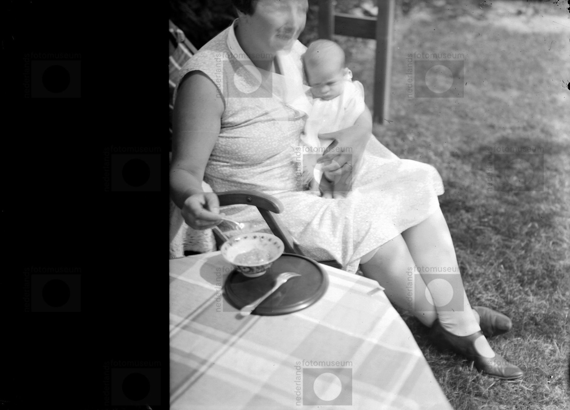 Nel Zwart voert Peer in tuin, Wassenaar (zomer 1930)