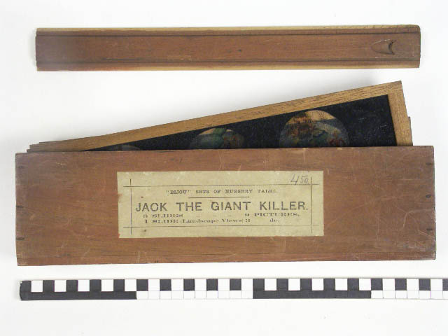 Doos met toverlantaarnplaatjes "Jack the giant killer"