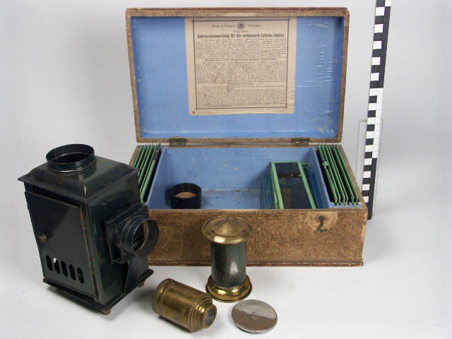 Toverlantaarn met toverlantaarnplaatjes