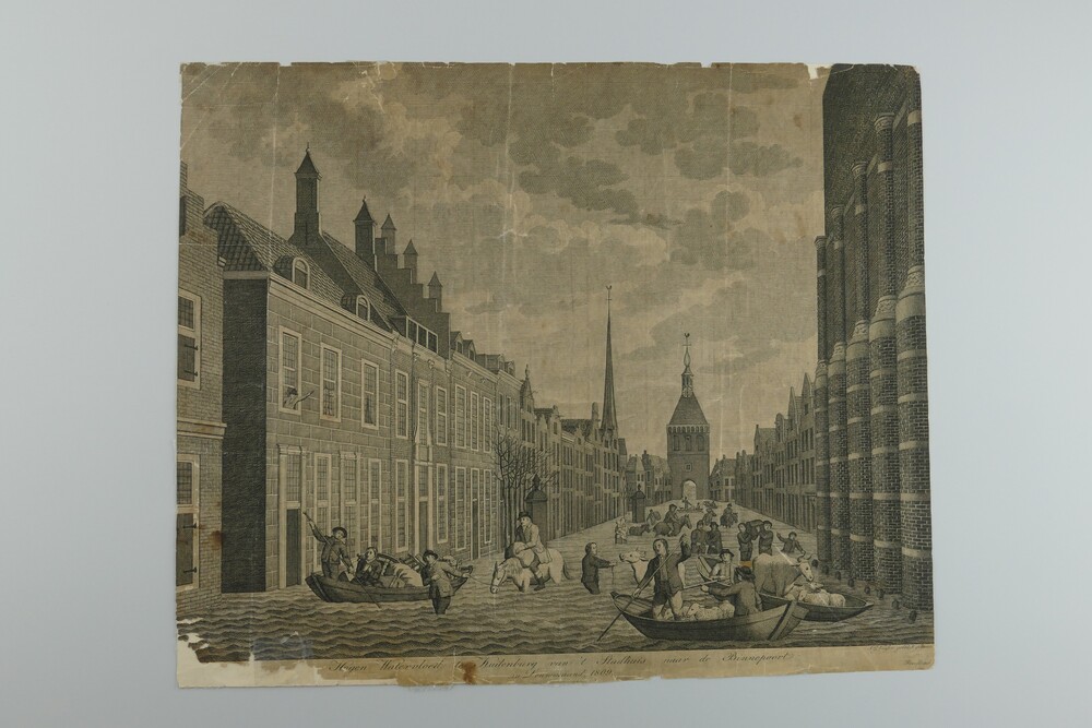 Gravure voorstellende 'De markt te Culemborg bij hoo...