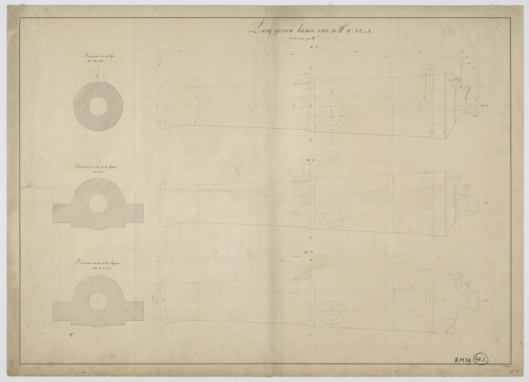 Lang ijzeren kanon 30 lb no 1, 2, 3