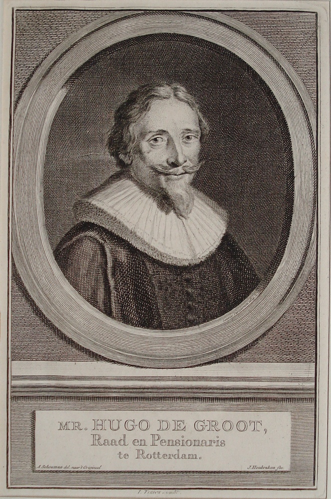 portret in ovaal met borststuk van Hugo de Groot. Ko...