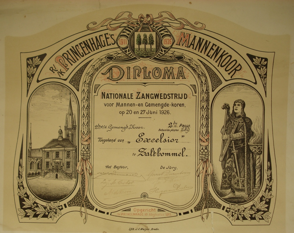 diploma voor het Gemengd Koor Excelsior Zaltbommel 1926