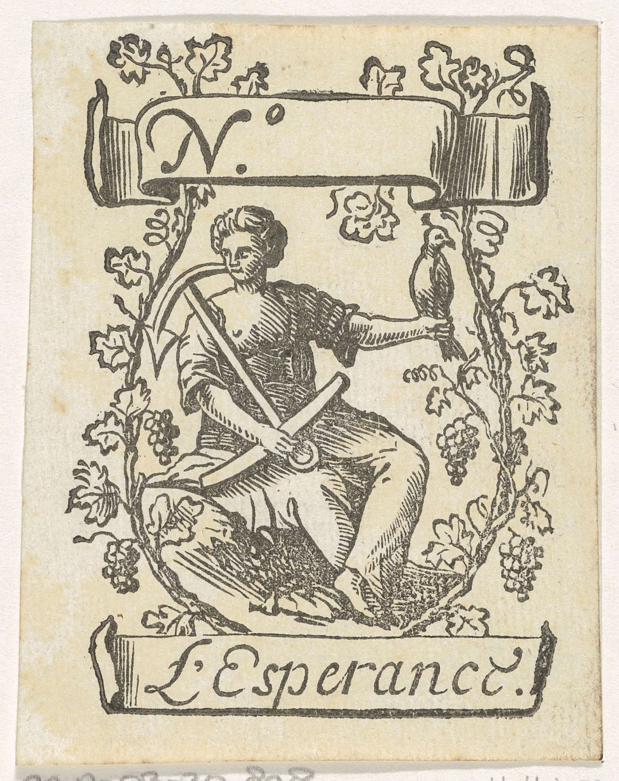 Handelsetiket met Hoop die een anker en een vogel va...