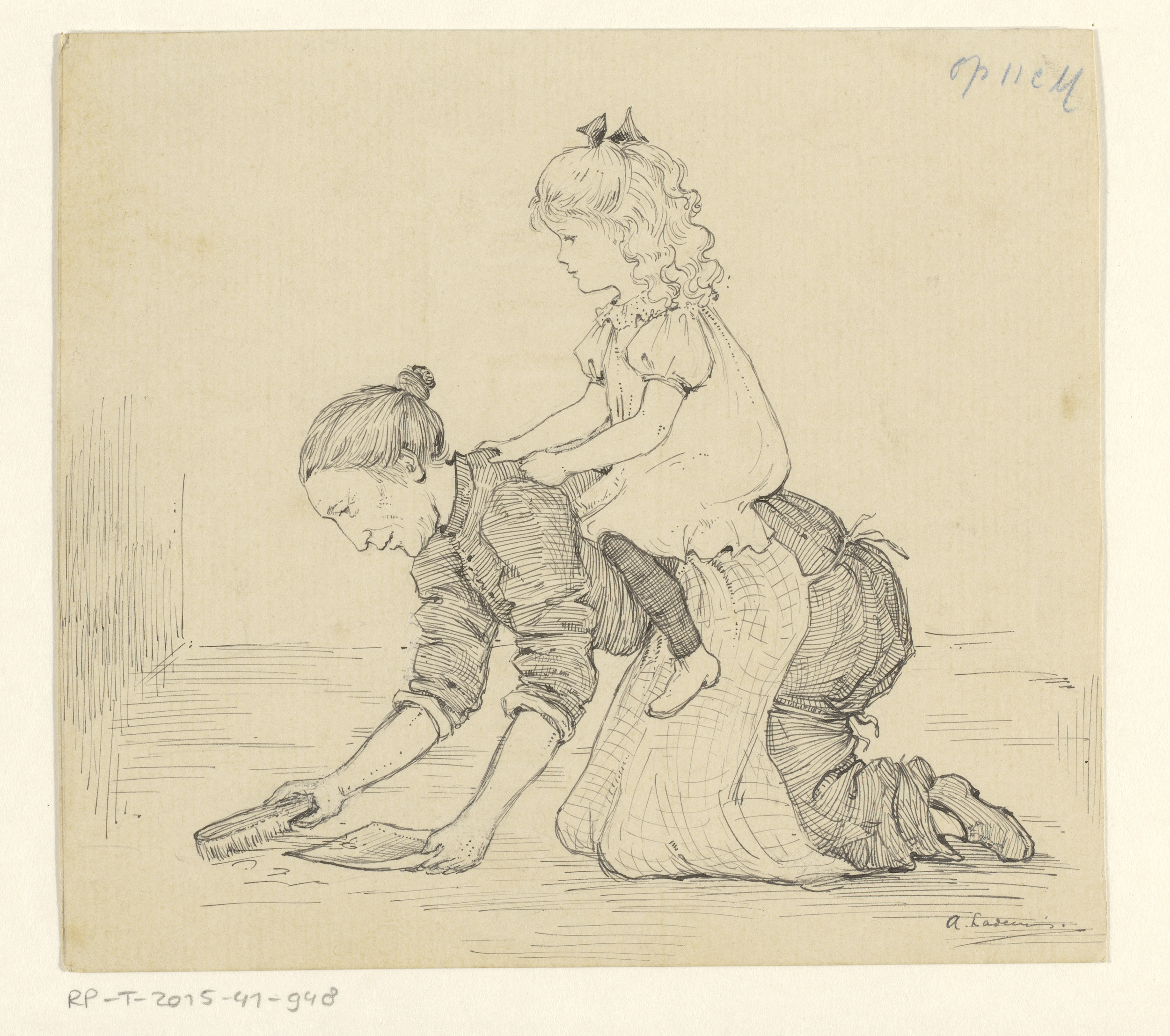 Meisje op de rug van een huishoudster