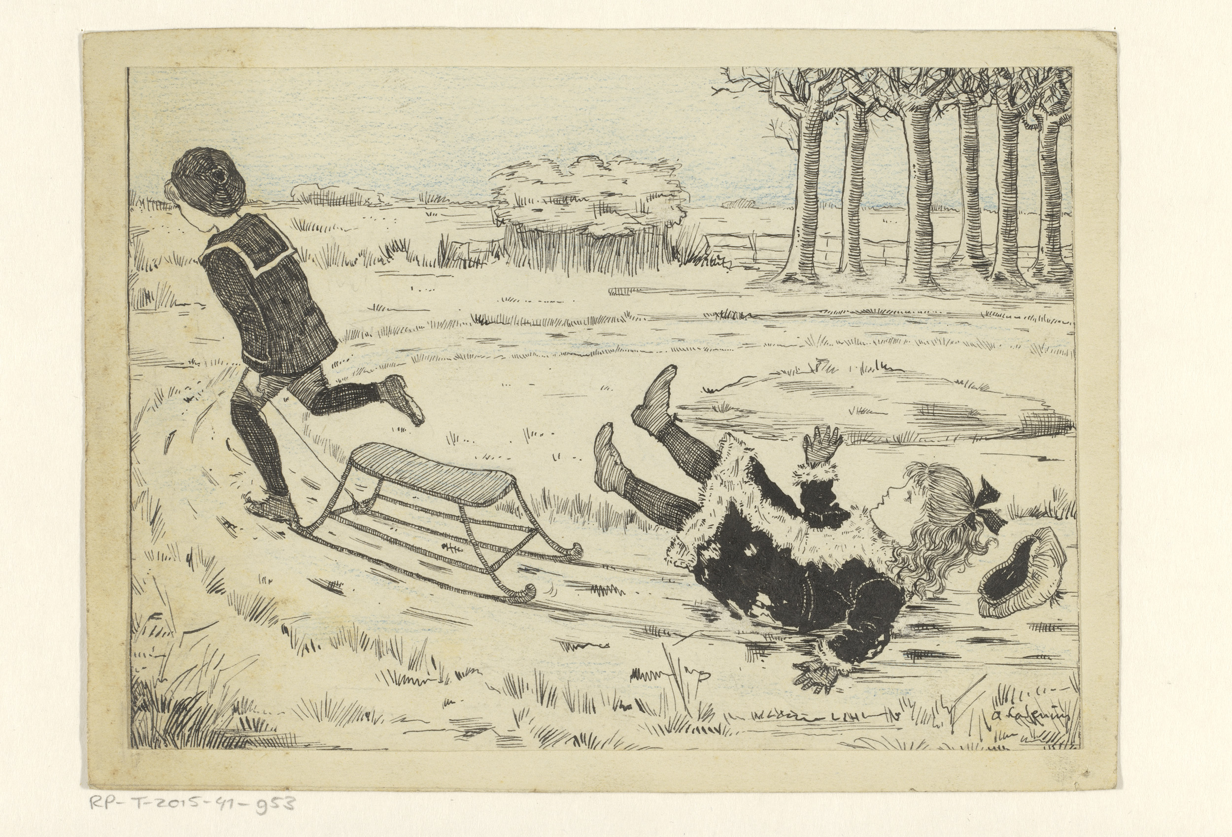 Meisje valt van een slee