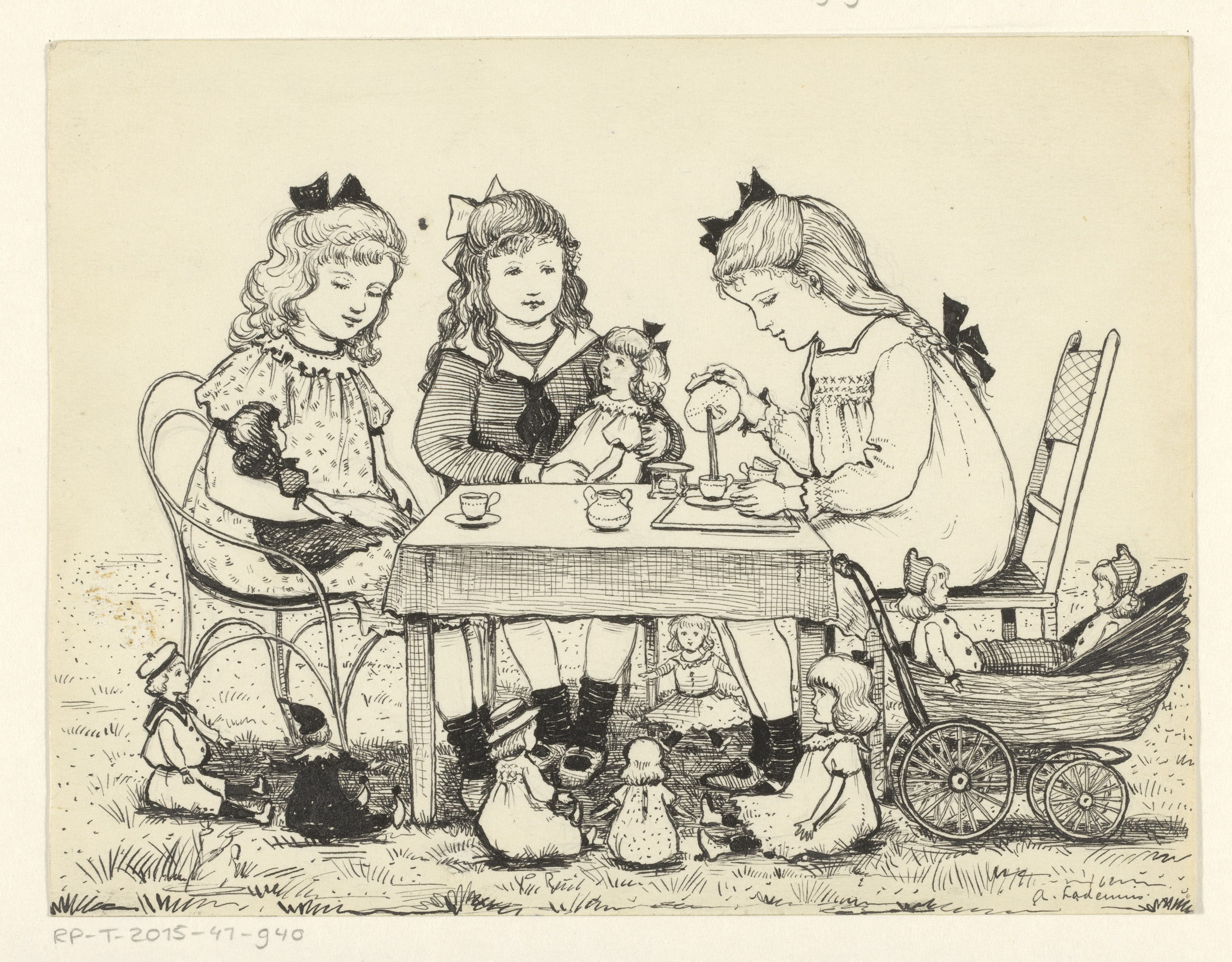 Meisjes en hun poppen op theevisite