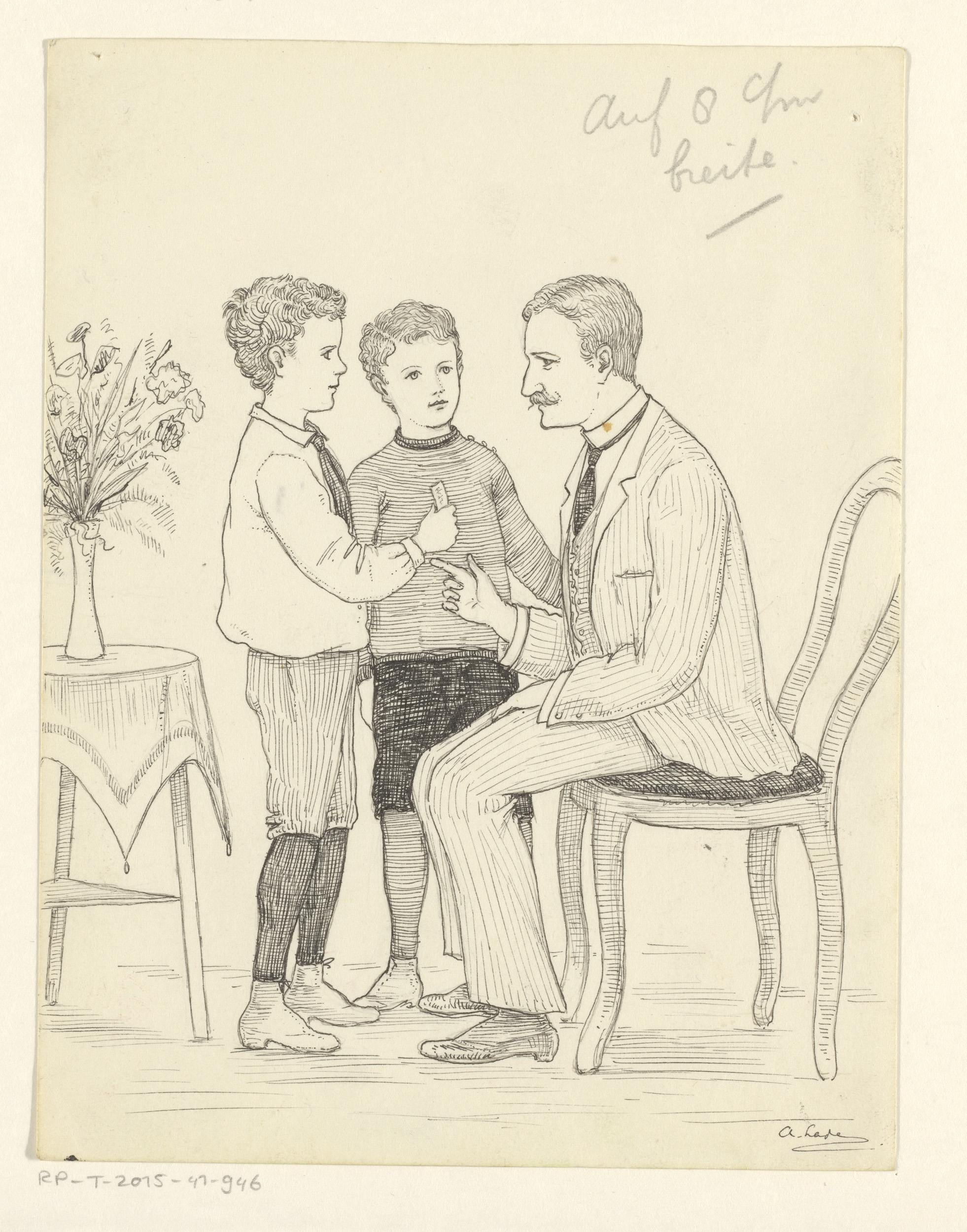 Twee jongens bij een zittende man