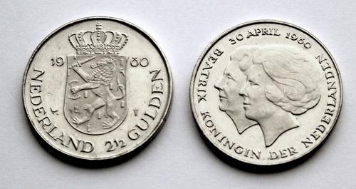 Cassette met 1 en 2½ gulden abdicatie Juliana en Bea...