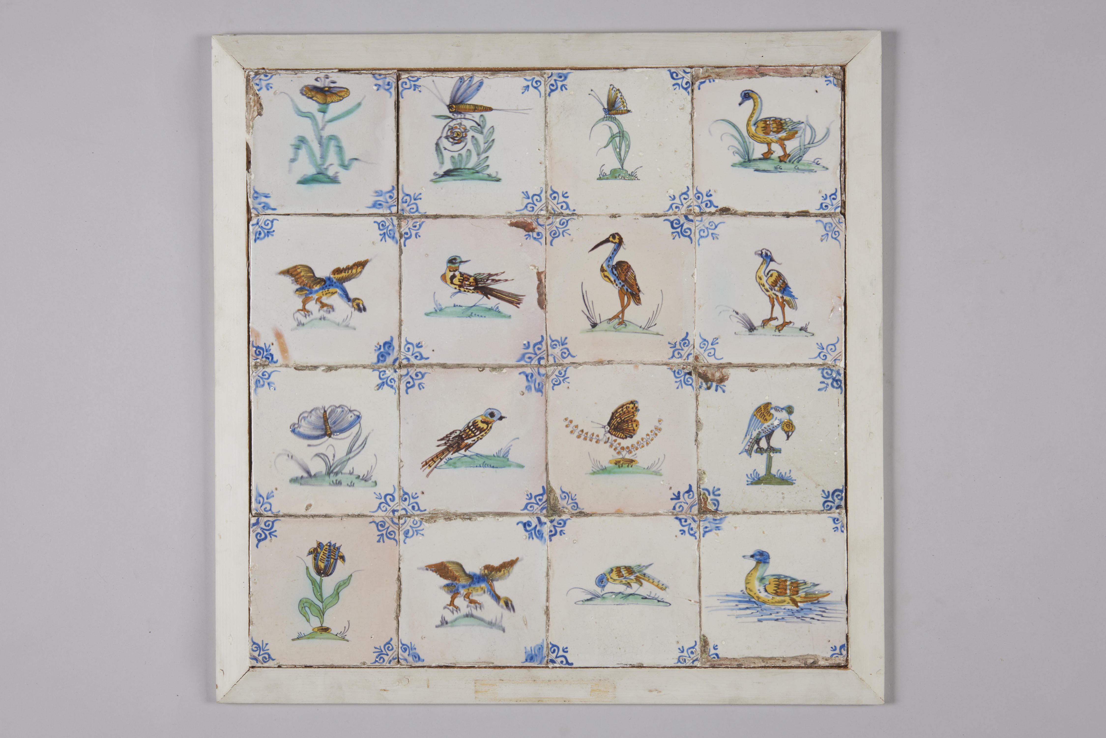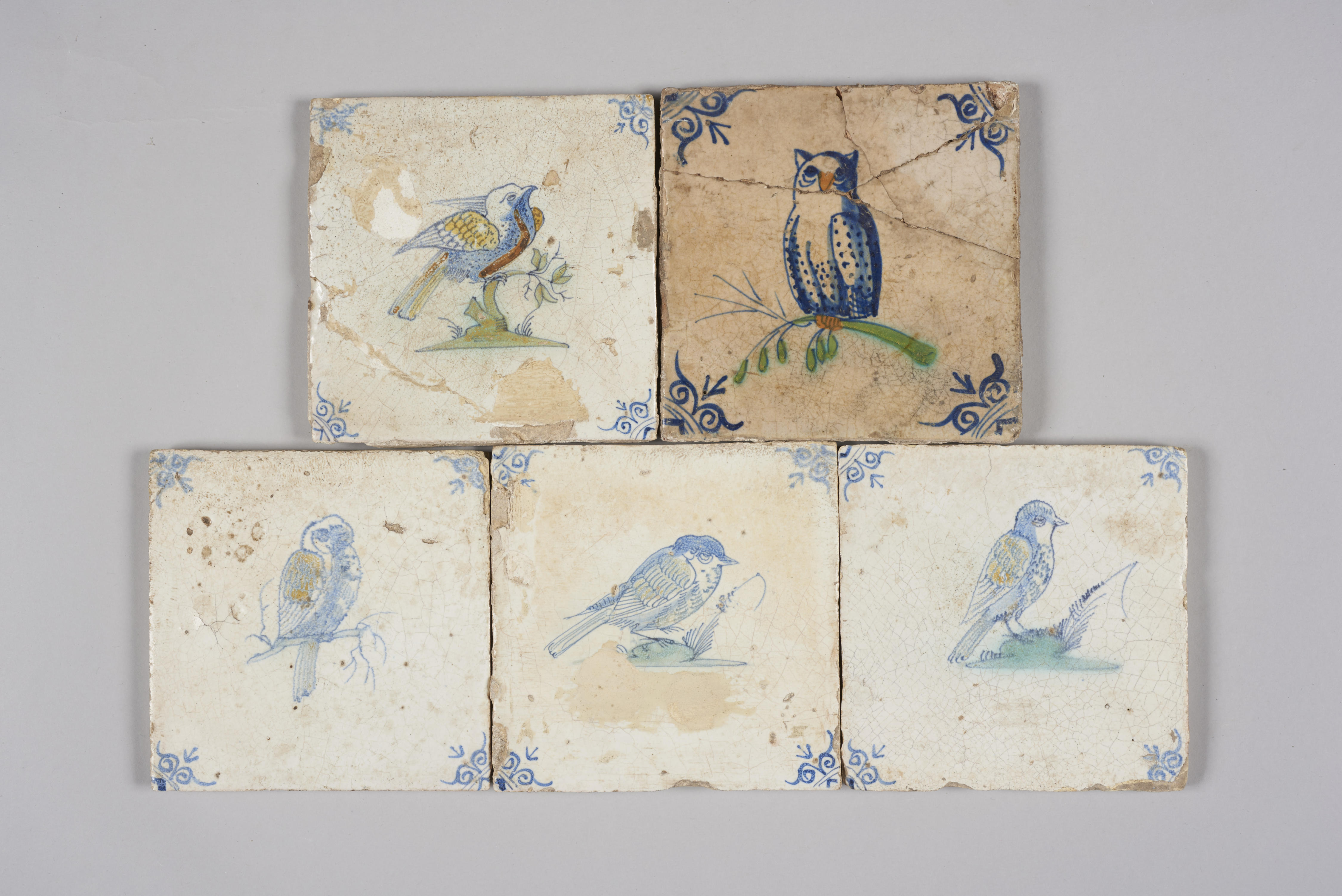 Vijf wandtegels met afbeelding vogel, 1700–1750