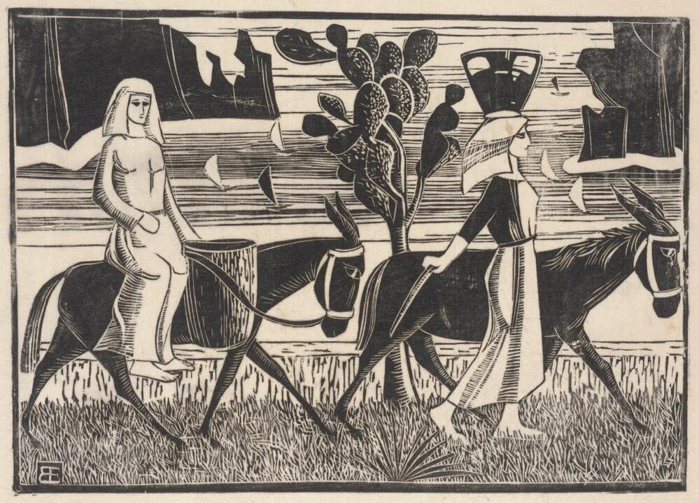 Twee vrouwen met twee ezels