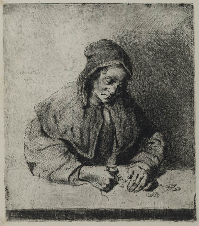 Vrouw die geld telt (Rembrandtachtig)