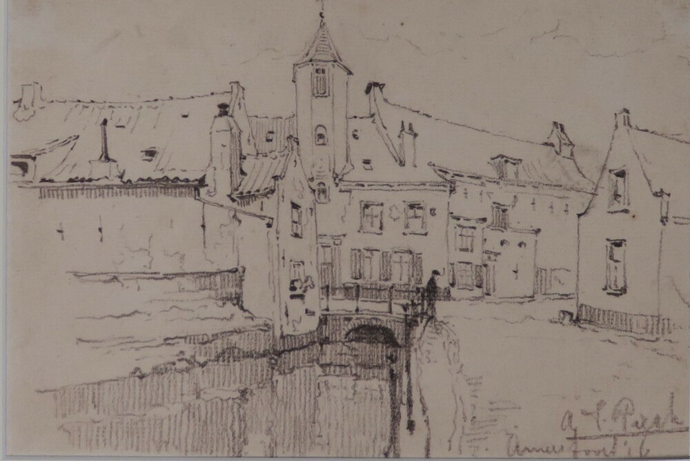 Dakkapel, voorstudie kalenderplaat Haarlem, Hofje va...