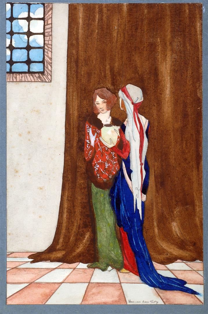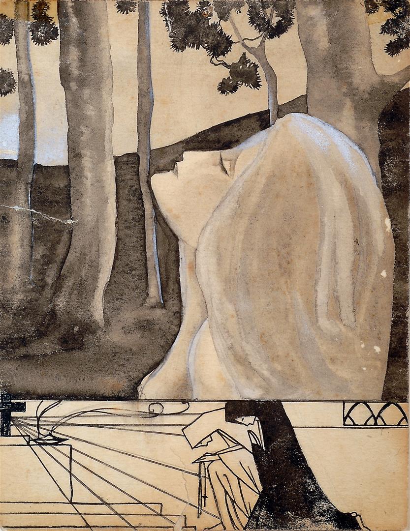 dekverf, aquarelverf, potlood, inkt, zwarte inkt, papier, beige papier (2)