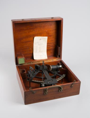 19e eeuws Metalen Sextant in houten kist