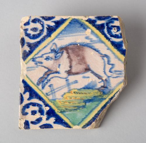 Siertegel ''Kwadraattegel'' met Polychroom afbeeldin...