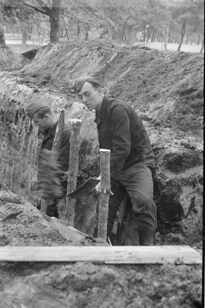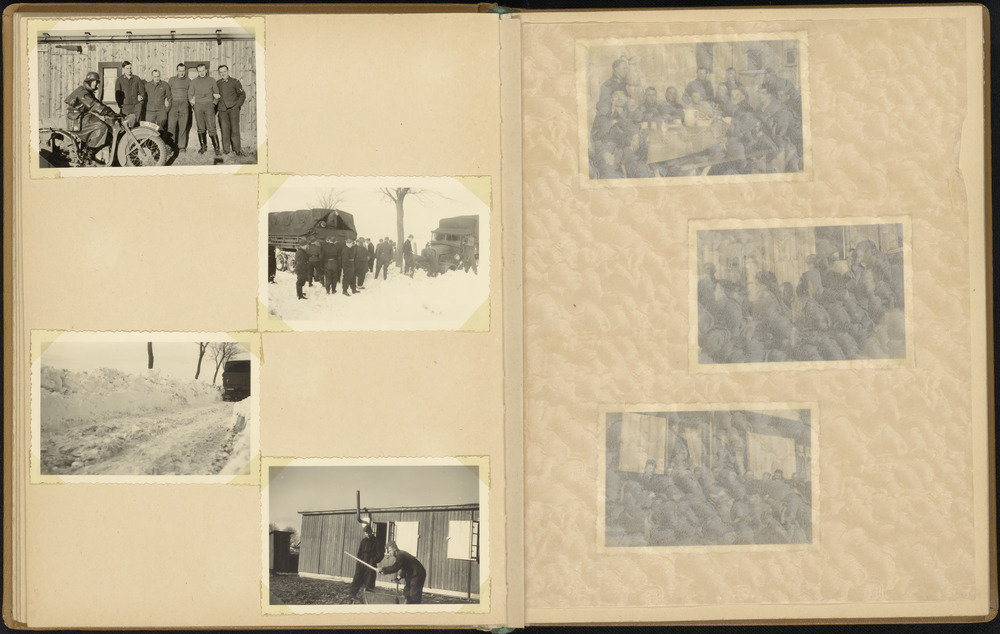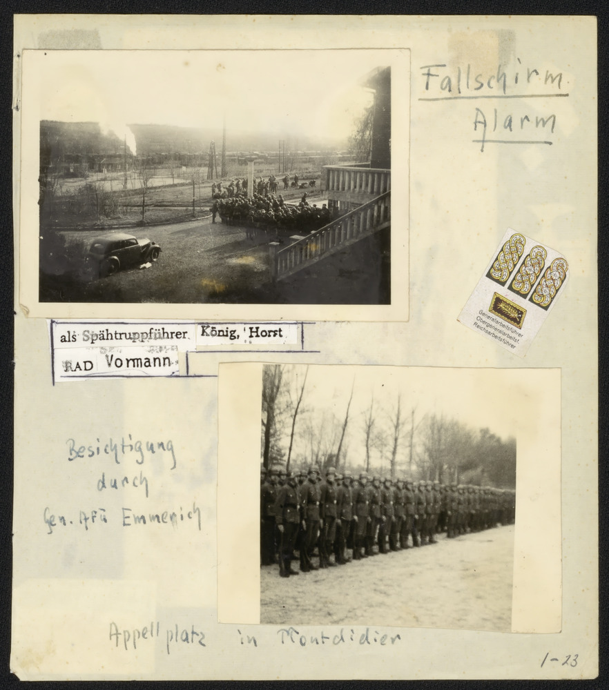 Duitse militairen poseren voor de foto, vrachtwagens...