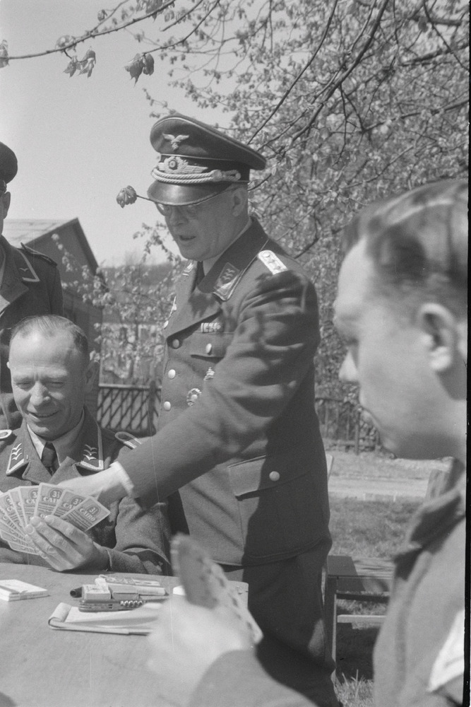 Een aantal Luftwaffe militairen aan het kaarten. De ...
