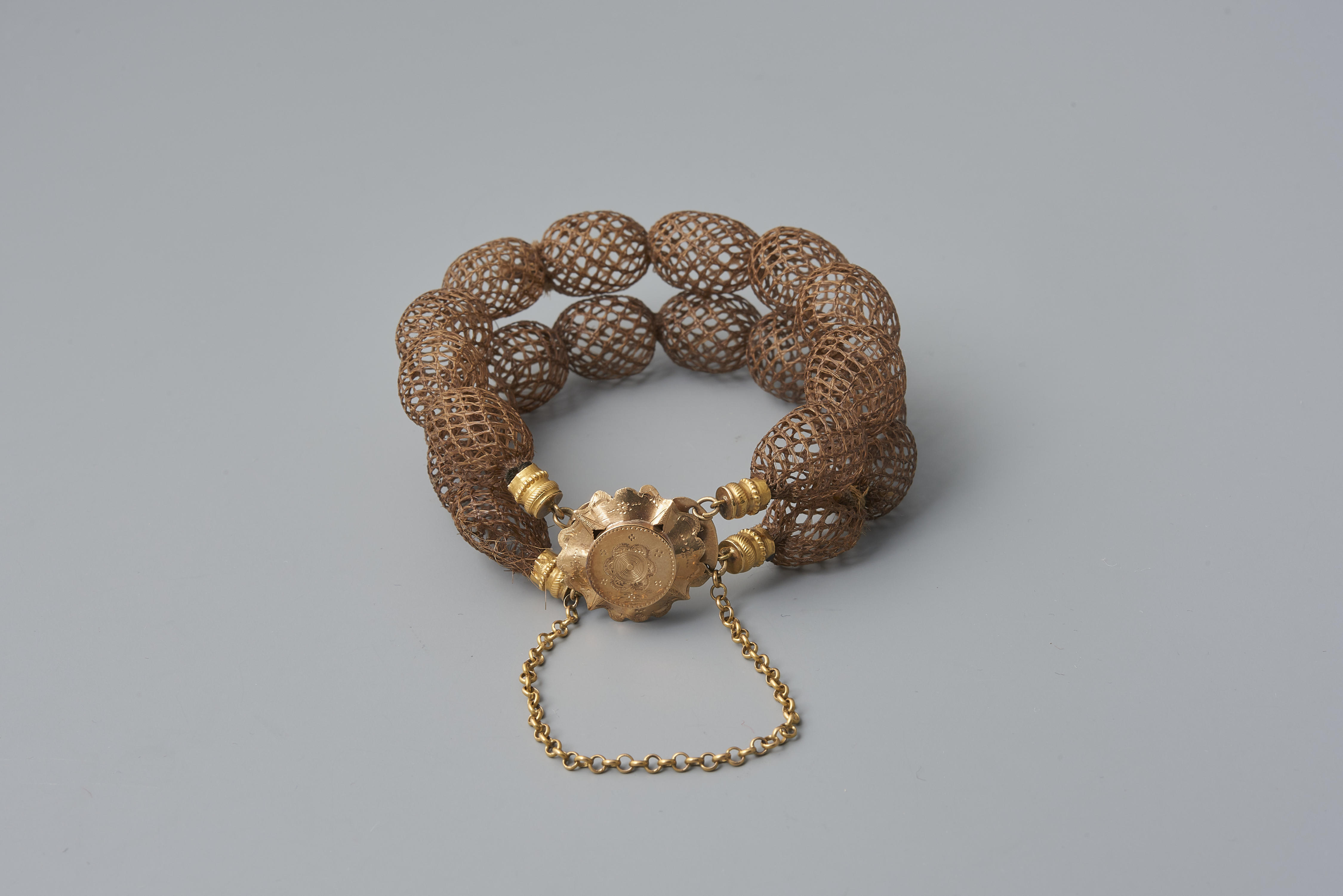 Armband van gevlochten haar en gouden slot, Noord-Ho...