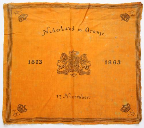 Oranje gedenkdoek 50 jaar Koninkrijk der Nederlanden