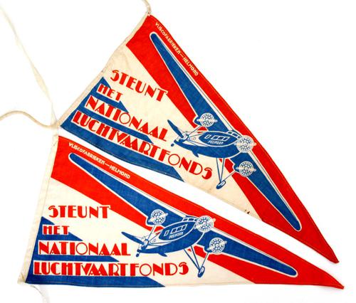 2 fiets vlaggetjes; STEUNT HET NATIONAAL LUCHTVAARTF...
