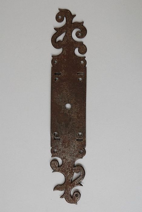 IJzeren deurplaat, rechthoekig met rond gat (voor kl...