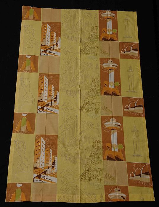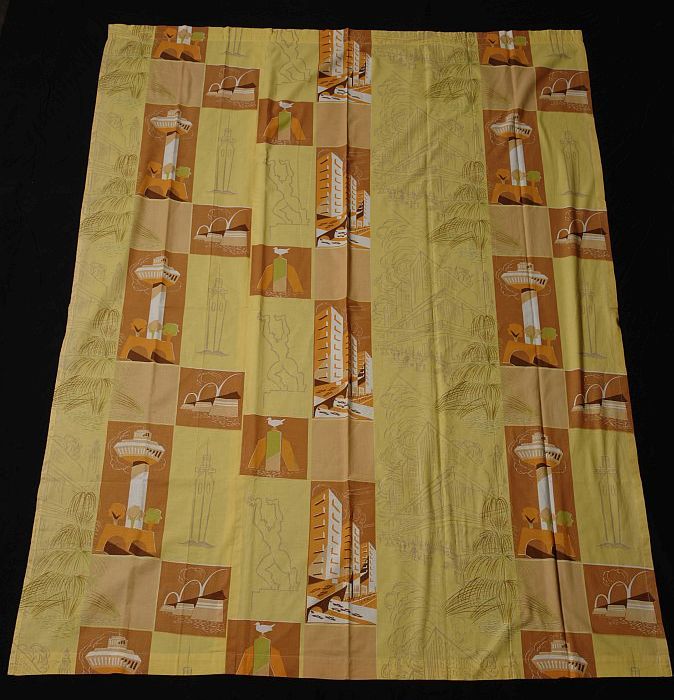 Geel gordijn met afbeeldingen van de stad Rotterdam