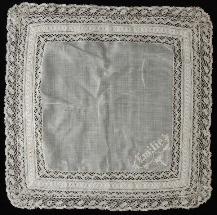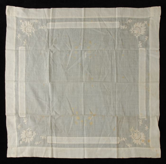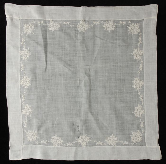 Vierkante zakdoek van wit batist met brede zoomrand ...