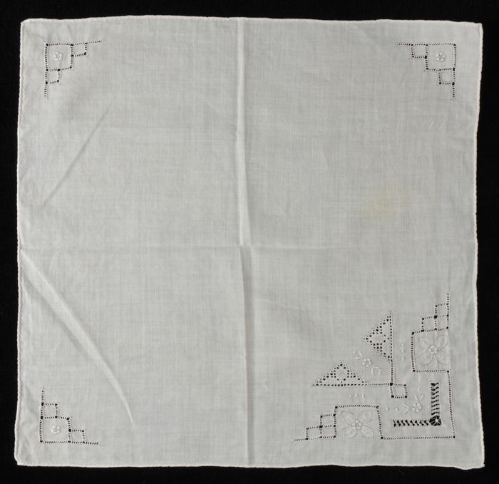 Vierkante zakdoek van wit katoen met open naaiwerk e...