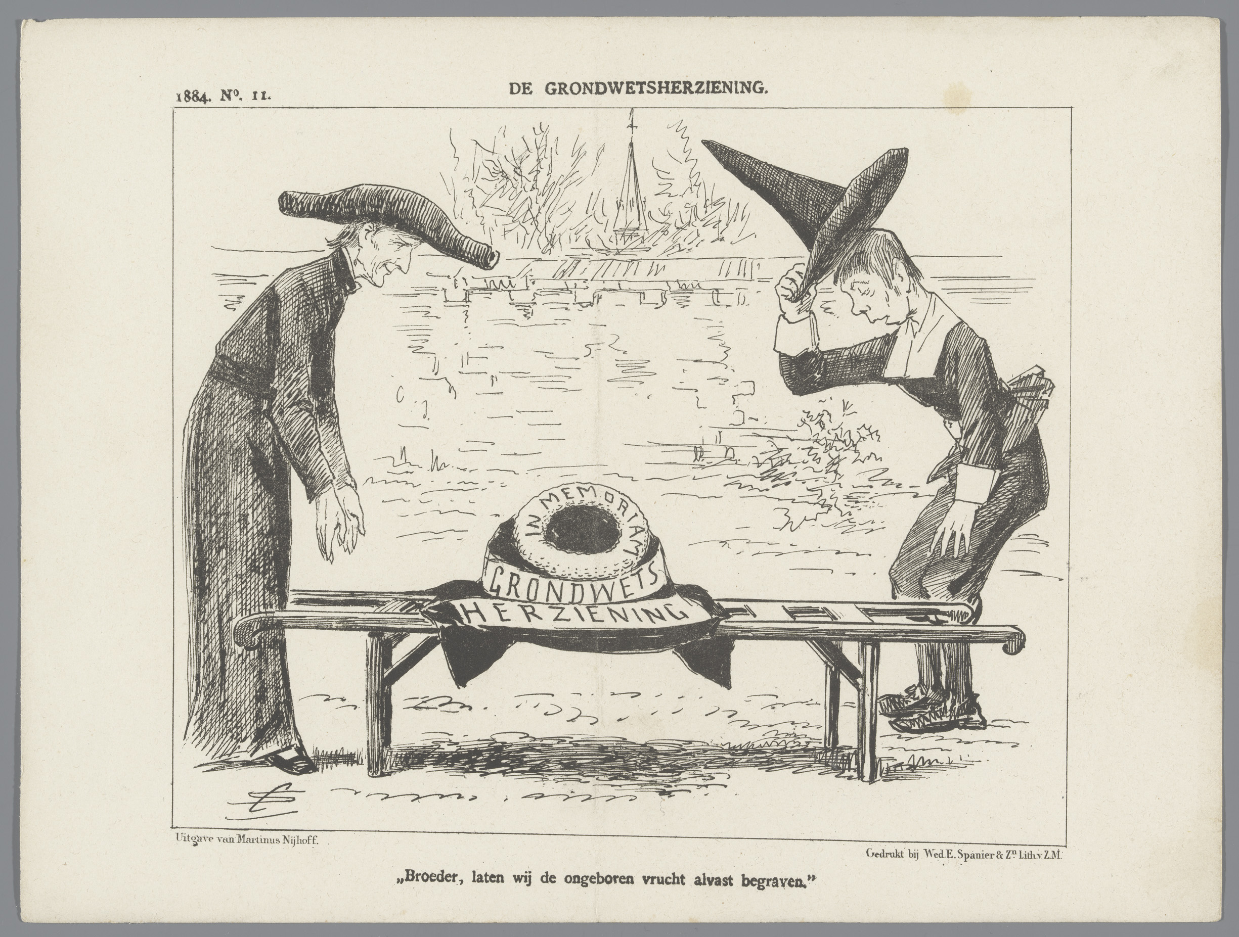 Spotprent over de grondwetsherziening, 1884
