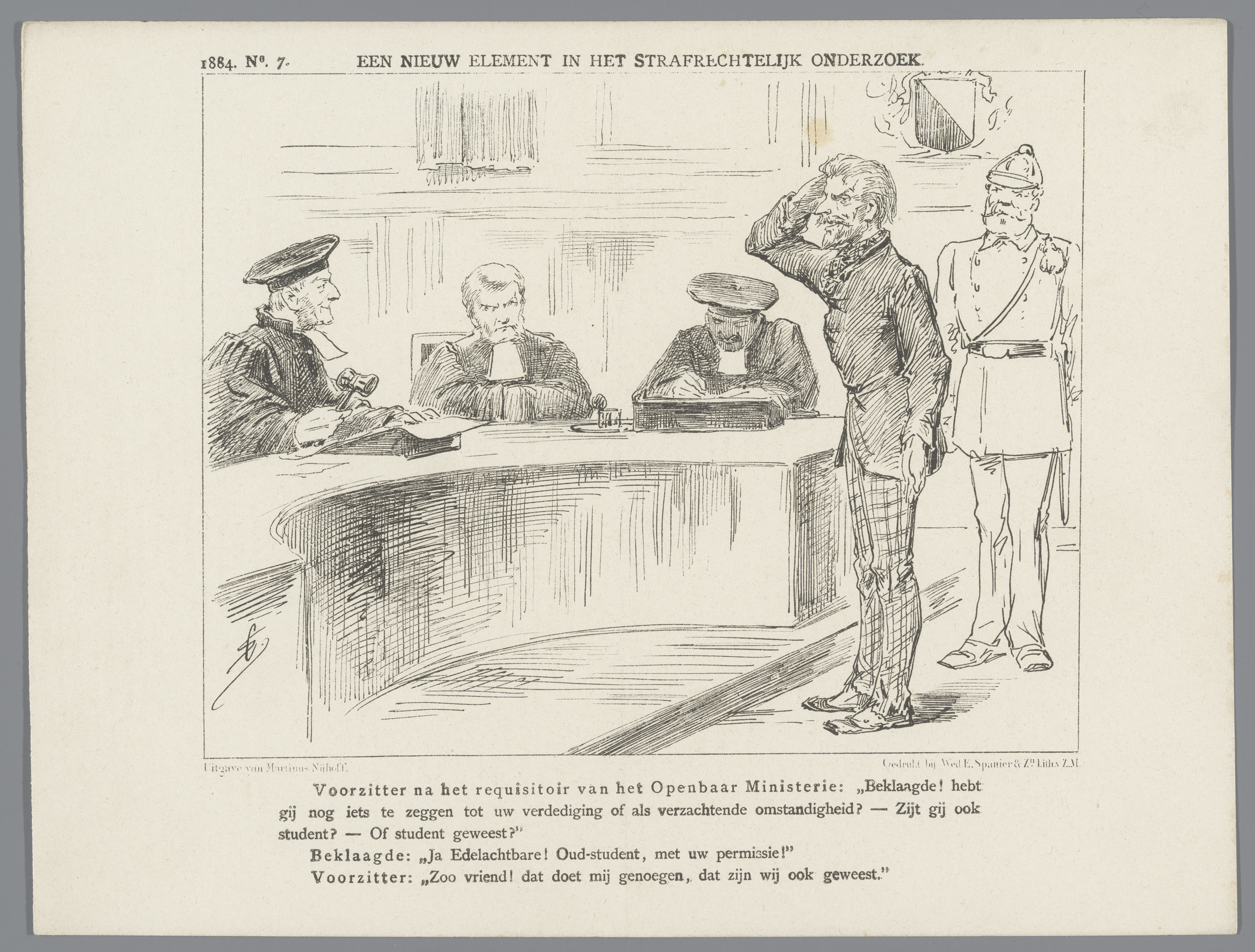Spotprent over de Utrechtse rechtbank, 1884