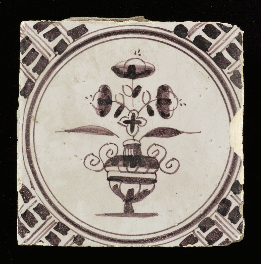 Tegel van keramiek, tinglazuur, voorstellende een bl...