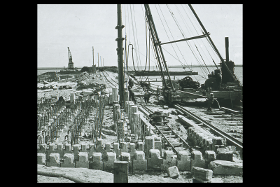 Monument van W.M. Dudok bij de Vlieter in aanbouw, 1...