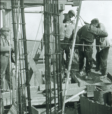 Bouw van kazematten in de Afsluitdijk, Kornwerderzan...