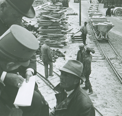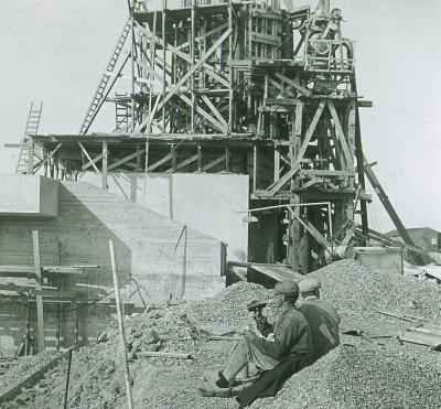 Monument van W.M. Dudok bij de Vlieter in aanbouw, 1933