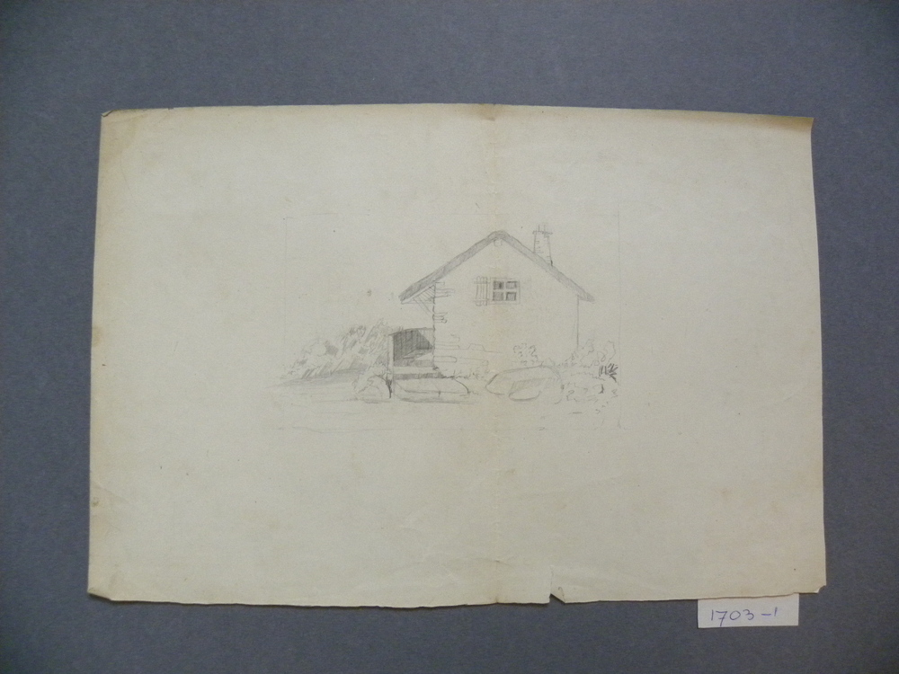 Potloodtekening voorstellende huisje, geassocieerd m...