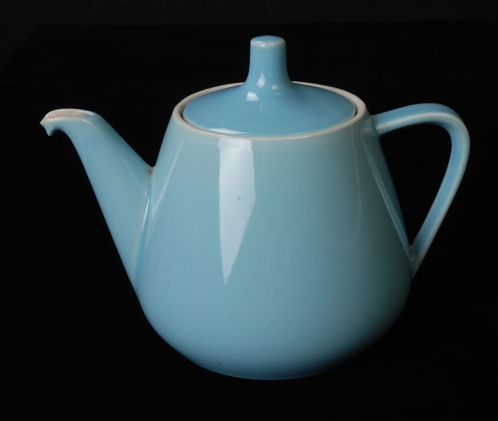Blauwe theepot (A) met deksel (B) van Van Nelle, voo...